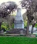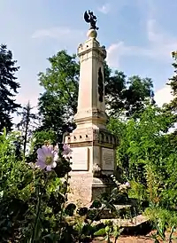 Памятник построен по проекту архитектора Антония Осиповича Томишко итальянцем Луиджи Фарабоско в 1882—1884 годы. В качестве материала для него послужил песчаник из села Ташкесен и гранит. Основание памятника, имеющего форму усечённой пирамиды, представляет собой четырёхугольную площадку, на которой покоится цоколь, украшенный бронзовыми венками. На переднем плане надпись: