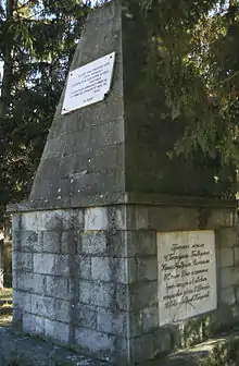 На памятнике, сложенном из обработанного камня в 1910 году под селом Горубляне близ Софии, написано: