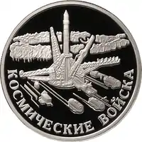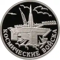 серебро | Вооружённые Силы Российской Федерации: Космические войска (Стартовый комплекс с ракетой-носителем, осуществившей в 1957 году вывод в космос первого искусственного спутника Земли) |