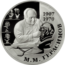 серебро | Выдающиеся личности России: 100-летие со дня рождения М. М. Герасимова | ![]() |