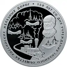 серебро | Транспорт: 150 лет со дня учреждения Главного общества российских железных дорог | ![]() |