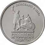 серебро | 150-летие основания Русского исторического общества: портрет П. А. Вяземского на фоне фасада Ново-Михайловского дворца в Санкт-Петербурге | ![]() |