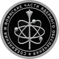 серебро | Вооруженные силы Российской Федерации (соединения и воинские части ядерного обеспечения Министерства обороны Российской Федерации): эмблема соединений и воинских частей ядерного обеспечения | ![]() |