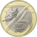 сталь плакированная никелем и латунью | 75-летие Победы советского народа в Великой Отечественной войне 1941–1945 гг.: изображения числа «75», пятиконечной звезды и лавровой ветви[1] | ![]() |