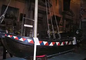 | Святой Николай | 3/4 | 6,1 x 1,97 | 0,8 | Построен и приобретён в Англии | 1640-е | Приобретён боярином Н. И. Романовым для речных прогулок. Весной 1688 года был отремонтирован и использовался для обучения Петра I управлению парусными судами. С 1701 года хранился в Москве под навесом у колокольни Ивана Великого. В 1722 году принимал участие в торжественных мероприятиях по случаю победы в Северной войне, а в 1723 году был перевезён в Санкт-Петербург и оставлен на хранение в Петропавловской крепости. В 1724, 1744, 1754, 1803 и 1836 годах принимал участие в различных торжественных мероприятиях. В 1782 году был одним из экспонатов Всероссийской политехнической выставки в Москве. С 1940 года хранится в Центральном военно-морском музее, с 1941 по 1946 год находился в эвакуации в Ульяновске, как национальная реликвия. | [4][5][6] |