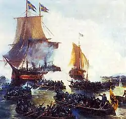 н/д | Принимал участие в русско-турецкой войне 1768—1774 годов, в том числе в сражении с турецкими судами. 6 (17) ноября 1773 года выброшен на берег во время шторма, однако позже снят и в 1774 году переоборудован в брандер. | [17][21] | ||||||
