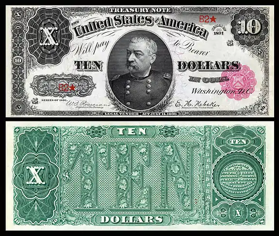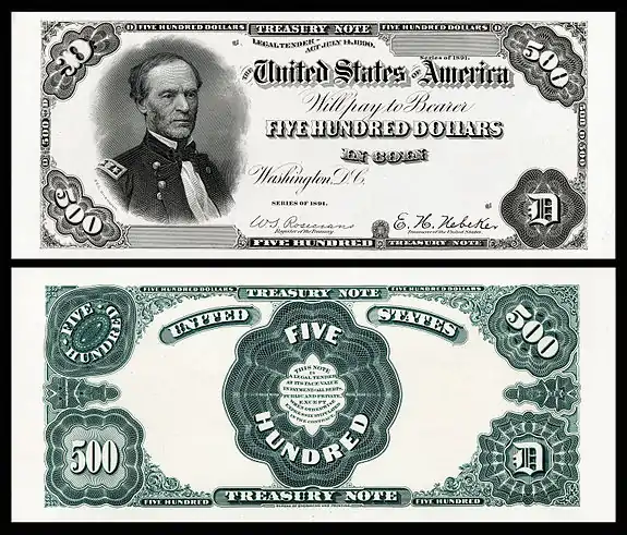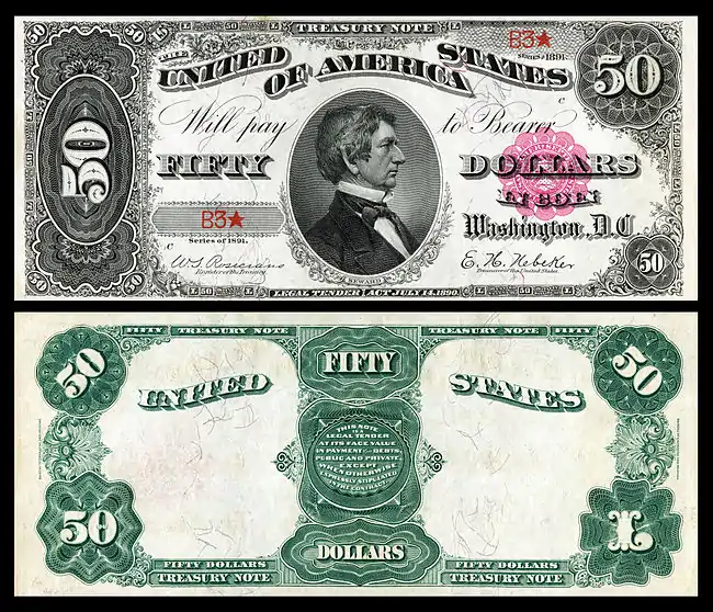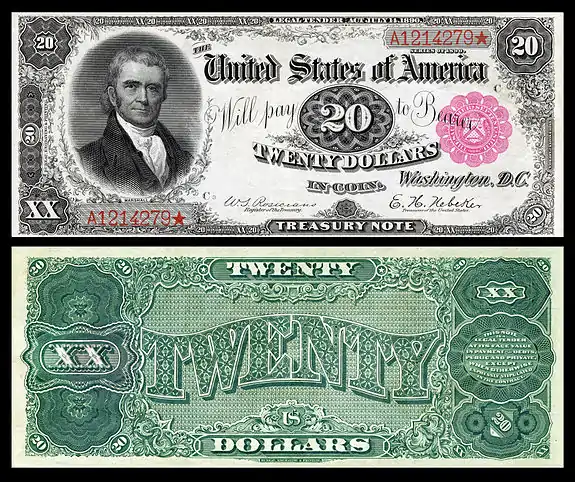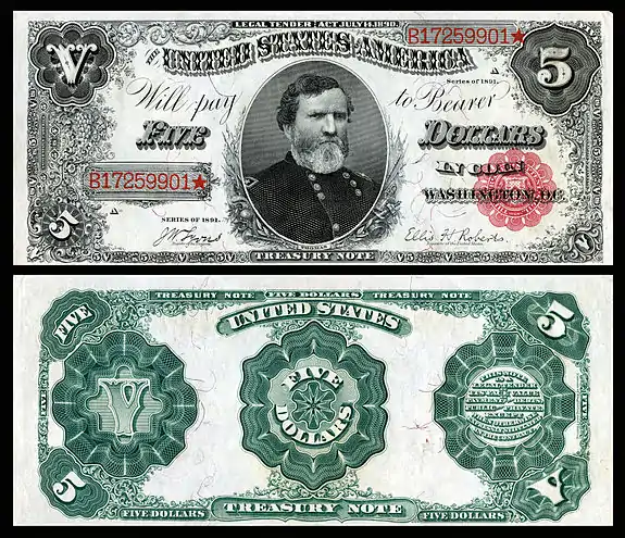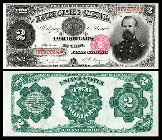 | К(м)Б | Казначейский (монетный) билет (англ. Treasury Note (1890–91)) | Большой |