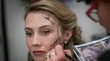 Глава отдела по гриму Дебра ЛаМия Денавер объяснила, что для «раны» Нулевой материи на лице Фрост «рекомендовалось сделать так, чтобы она была похожа на треснувшую фарфоровую куклу, а затем чёрная материя выходила изнутри. Оттуда Джей [Вейебе, гримёр] разработал сложный грим, который мы используем, а Робин [Бошен, ключевой гримёр] создала все различные пути, по которым движется тёмная материя». Используя фотографии для отсылок и готовый грим, команда гримёров в конечном итоге смогла нанести грим Эверетт за 30 минут. Затем «трещина» была дополнена визуальными эффектами, чтобы добавить глубину, чувствительность и «бесконечную черноту» путём коррекции цвета изображения, при этом аниматоры эффектов изучали «растрескивание стекла, чтобы лучше передать эффект анимации».[64]