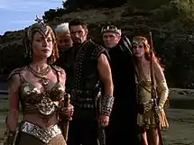 - Зена (англ. Xena, актриса — Люси Лоулесс, в нескольких эпизодах — Хадсон Лейк). Сначала она была безжалостной убийцей, жаждавшей покорить весь мир, потом решила встать на путь добра. В этом ей помог Геракл. Вместе со своей попутчицей Габриэль она стала путешествовать, помогая слабым и сражаясь со злом.