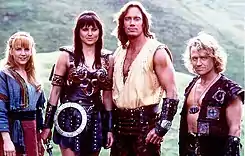 - Геракл (англ. Hercules, актёр — Кевин Сорбо). Сын Зевса и Алкмены, древнегреческий герой. Получеловек-полубог; обладает огромной силой, которую унаследовал от отца. Так же, как и Зена, посвятил себя борьбе со злом. Не ладит со своей мачехой Герой и часто старается помешать её недобрым замыслам.