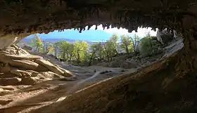 Пеще́ра — полость в верхней части земной коры, сообщающаяся с поверхностью одним или несколькими входными отверстиями[1]. Другое определение: пещера — естественная подземная полость, доступная для проникновения человека, имеющая неосвещённые солнечным светом части и длину (глубину) больше, чем два других измерения[2]. В некоторых источниках к пещерам относят и искусственные антропогенные полости[3][4][5]. Наиболее крупные пещеры — сложные системы проходов и залов, нередко суммарной протяжённостью до нескольких десятков и даже сотен километров.