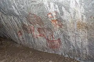Список пещер с пещерной живописью включает места с наскальной живописью первобытных людей, выполненной с помощью охры и угля.