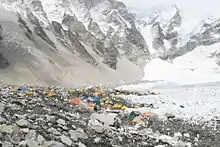 25 апреля 2015 года произошло мощное землетрясение, вызвавшее сход лавин на Джомолунгме. Лавина накрыла часть южного Базового лагеря; погибло не менее 19 человек[17][18][19][20].