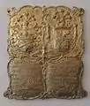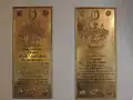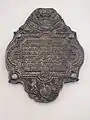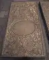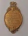- Скавронский, Мартын Карлович, (1714—1776). Медная оковка, позолота. Мастер И. X. Праузенбергер, 1776 г. Перенесена из Некрополя XVIII века. Могильная плита находится на Ломоносовской дорожке, левая сторона. (Палатка).