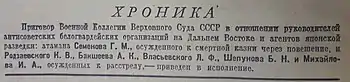 - 27 августа 1946 года: суд над атаманом Семеновым и его подельниками. Дата обращения: 12 ноября 2011. Архивировано 16 октября 2011 года.