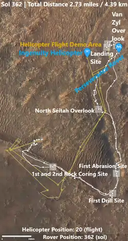 - Josh Ravich. North-By-Northwest for Ingenuity’s 11th Flight (англ.). Status report #318. NASA JPL (05.08.2021). Дата обращения: 5 августа 2021.