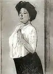 Из числа рисунков последнего года жизни, в которых видно всецело захватившее Серова стремление к упрощённости средств выражения, не последнее место должно быть отведено рисунку полуфигуры юной девушки, М. А. Ливен.