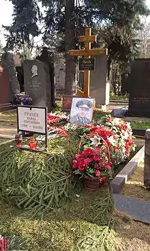 - Грачёв, Павел Сергеевич (1948—2012) — министр обороны РФ (1992—1996), генерал армии (1992), Герой Советского Союза; 6 уч. у Центральной аллеи.