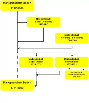 В 1771 году маркграфство Баден-Баден было объединено с Баден-Дурлахом.