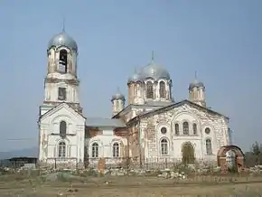 | Богородице-Казанский храм | 1990-1994 | Строительство храма было начато в 1990 году на месте большой Троицкой-Никольской церкви, снесённой незадолго до этого (здание существовало с ~1898 г., а до этого здесь стояла старая Троицкая церковь).