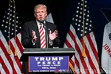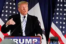 Список предвыборных митингов президентской кампании Дональда Трампа. В общей сложности было проведено 325 митингов: 187 в период праймериз и 138 до самих выборов. Суммарная посещаемость составила около 1,7 млн человек (875 тыс.+ в период праймериз и 800 тыс.+ до самих выборов).
