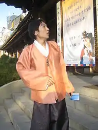 ![]() | Тани — церемониальный жакет периода династии Чосон | ![]() | Вонсам — платье с длинными рукавами, которое носили знатные корейцы, короли и придворные |