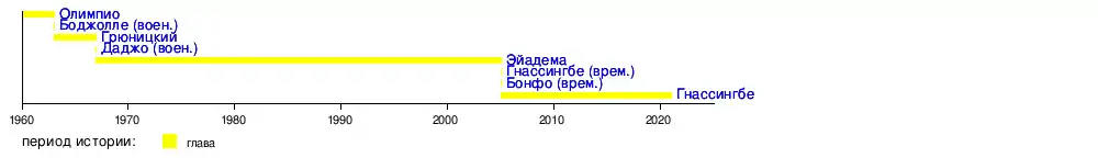 15 января 1963[8] | 10 мая 1963 | Демократический союз населения Того | временный президент фр. Président par intérim | |