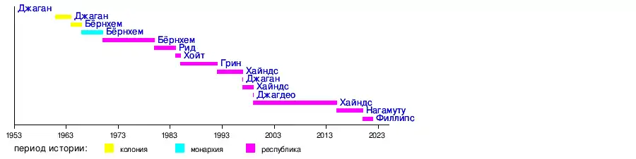 5 сентября 1961 | 12 декабря 1964 | Народная прогрессивная партия Гайаны | 1961 |
