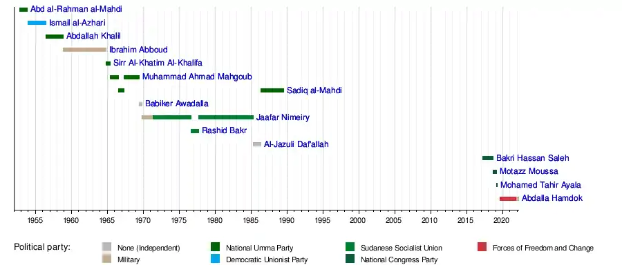 21 ноября 2021 | 2 января 2022 | 99 дней | Беспартийный | Абдель Фаттах аль-Бурхан![]() (2021–н.в.) |