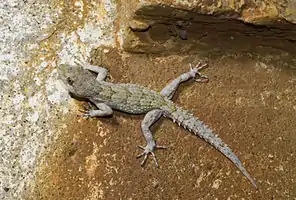 | Обыкновенная стенная ящерица | Podarcis muralis | Laurenti, 1768 | LC | Предпочитает горные каменистые и скалистые участки. Её также можно встретить в заброшенных каменных домах и других каменных сооружениях. | [31][32][33] |