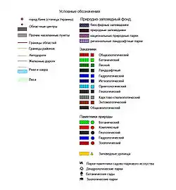 ![]() Природно-заповедный фонд государственного значения | ![]() Природно-заповедный фонд местного значения | ![]() Легенда к картам |