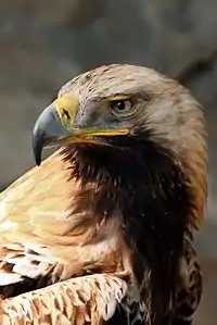 Беркут | Aquila imperialis | Редкий вид, численность которого в Азербайджане и по всему миру сокращается | Горные районы республики | Места обитения разнообразны, гнездятся на отвесных скалах и высоких деревьях у верхней границы горных лесов | Красная книга Азербайджанской ССР, 1989 г. Животный мир Азербайджана. Том III. Позвоночные, 2000. |