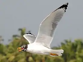 Уязвимая Оседлая, кочевая. На Украине гнездится на островах Ягорлыцкого, Тендровского и Джарылгаческого заливов, на Кинбурнской косе и острове Березань. В указанных районах, а также в прибрежной зоне Одесской области, и очень редко в украинской части дельты Дуная зимует часть популяции. На островах Ягорлицкого и Тендровского заливов Черноморского биосферного заповедника гнездится 1,2—2 тыс. пар, в РЛП «Кинбурнская коса» — около 100 пар, в других местах — единичные пары. В последние годы численность уменьшается. |