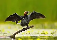 Гнездящийся, перелётный, зимующий вид. Гнездится группами на севере Ровненской области, на Днепре и Шацких озёрах. Зимует вдоль морского побережья, в Крыму, на Дунае, Днепре, в некоторых районах на западе и востоке страны[13]. | ||