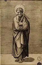 Серия «Двенадцать апостолов» представляла собой цикл монохромных фресок Рафаэля и его помощников. Оригиналы фресок были разрушенны при папе Павле IV, внешний вид 8 апостолов известен по гравюрам Маркантонио Раймонди. Отдельные апостолы (Гравюры Раймонди Маркантонио)