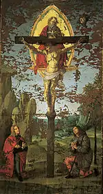 ![]() (лицевая сторона) ![]() (задняя сторона) | Святая Троица Сотворение Евы из Адама | ок. 1499 | Холст, масло; изначально двухсторонняя, затем разделена | 166 x 94 | Городская пинакотека, Читта-ди-Кастелло | |
