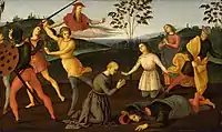 ![]() | Святой Иероним спасает Сильвана и наказывает еретика Сабиниана | 1503 | Доска, масло | 25,7 x 41,9 | Художественный музей Северной Каролины | |
