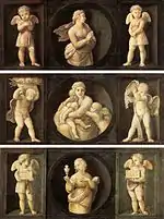 ![]() | Фриз с херувимами и грифонами (часть алтаря Бальони) | 1507 | Доска, масло | Н/Д | Национальная галерея Умбрии | |