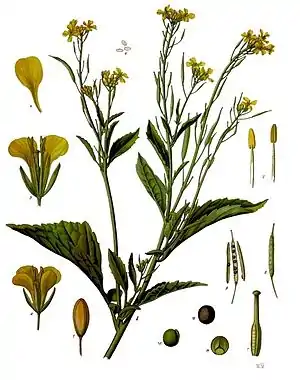 | Brassica nigra (L.) W.D.J.Koch | Горчица чёрная | I, 14 | Brassica nigra Koch.