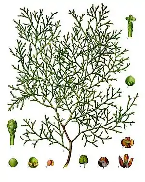 | Tetraclinis articulata | Тетраклинис членистый | II, 129 | Callitris quadrivalvis Vent.