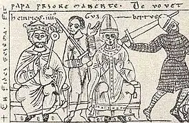 Антипапа — в Католической церкви так принято именовать человека, незаконно носившего звание папы. Обычно вопрос о том, кто из претендентов, одновременно оспаривавших папский сан, являлся законным папой, а кто антипапой, решался уже после исторической «победы» приверженцев одного из них. При принятии папами порядкового номера номер папы, признанного антипапой, обычно не учитывается. Несмотря на то, что церковь не признаёт антипап, в выходящем ежегодно официальном справочнике Annuario Pontificio в реестре понтификов их имена присутствуют, заключённые в скобки[6].