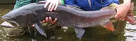 (Pallas, 1773) | Обыкновенный таймень — вид лососёвых отряда лососеобразных. Самый крупный представитель семейства, достигает длины 1,5—2 м при весе 60—80 кг. речной вид встречающийся в Амуре и сибирских реках от Оби до Индигирки (кроме Колымы). В Тюменской области отмечается в верховьях уральских притоков Нижней Оби; единично встречается в Иртыше и Тоболе. На численность вида влияют рыболовство и браконьерство.[1] | ||||||