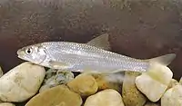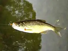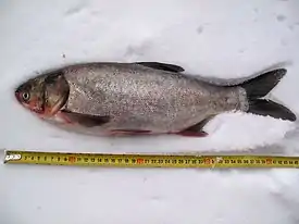 Пресноводная пелагическая рыба. Интродуцированный вид. Завезён на Украину в 1974 году. Культивируется в прудовых хозяйствах Одесской, Черкасской, Сумской и других областей[21]. | ||