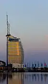 | 18 | ![]() | Atlantic Hotel Sail City | Bremerhaven | 147.0 | 482.3 | 23 | 2008 | Высота до крыши 86 метров, но высота архитектурного шпиля считаться официальной высотой. Главный арендатор Atlantic Hotels/ |