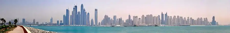 История высотного строительства в Дубае началась с 39-этажного Дубайского Всемирного торгового центра, высота которого составляет 149 м и построенного в 1979 году[7][8]. По завершении строительства это здание было самым высоким на Ближнем Востоке. С 1999 года, и, особенно, после 2005 года, Дубай переживает настоящий высотный строительный бум. Все 38 небоскрёбов выше 220 метров были построены после 1999 года. По состоянию на июнь 2011 года в Дубае 38 построенных высотных здания выше 120 метров, а также 19 строящихся и ряд запланированных к строительству. Предполагается, что к 2015 году Дубай будет иметь больше зданий выше 100 этажей, чем какой-либо другой город в мире[9]. Строятся и предлагаются такие интересные проекты, как самое высокое жилое здание в мире — Пентоминиум[10][11] и первая в мире вращающаяся башня — Dynamic Tower[12][13].
