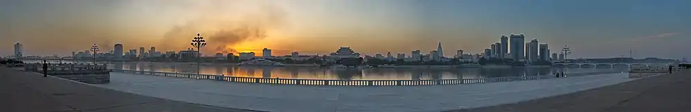 Панорама города Пхеньяна, столицы Северной Кореи.