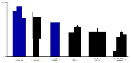 | Albert Bridge House | 1959 | Офисы | 64 | 210 | 18 | ![]() | [35][36] | |