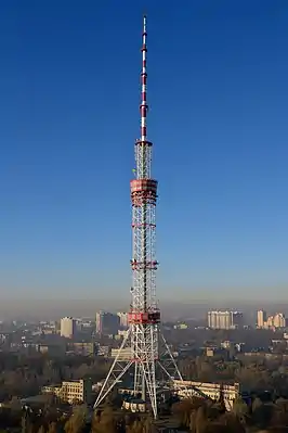 | 1 | ![]() | Киевская телебашня | 385 | 1973 | Решётчатая мачта | Установка передатчиков | Киев | Самая высокая решётчатая башня в мире. Самое высокое сооружение Украины. | 50°28′16″ с. ш. 30°27′12″ в. д. |