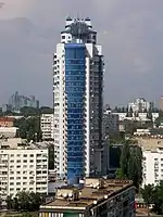 120 | 28 | 1974—1986 | 50°26′58″ с. ш. 30°28′51″ в. д. | Киев | В 2003 году здание было полностью реконструировано, также была была установлена 8-метровая антенна, с учётом которой высота здания составляет 128 метров |