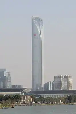 | 38 | Гуанчжоуский международный финансовый центр | ![]() | 438,6 | 103 | 2010 | небоскрёб | [40] | 23°07′25″ с. ш. 113°19′07″ в. д. | |